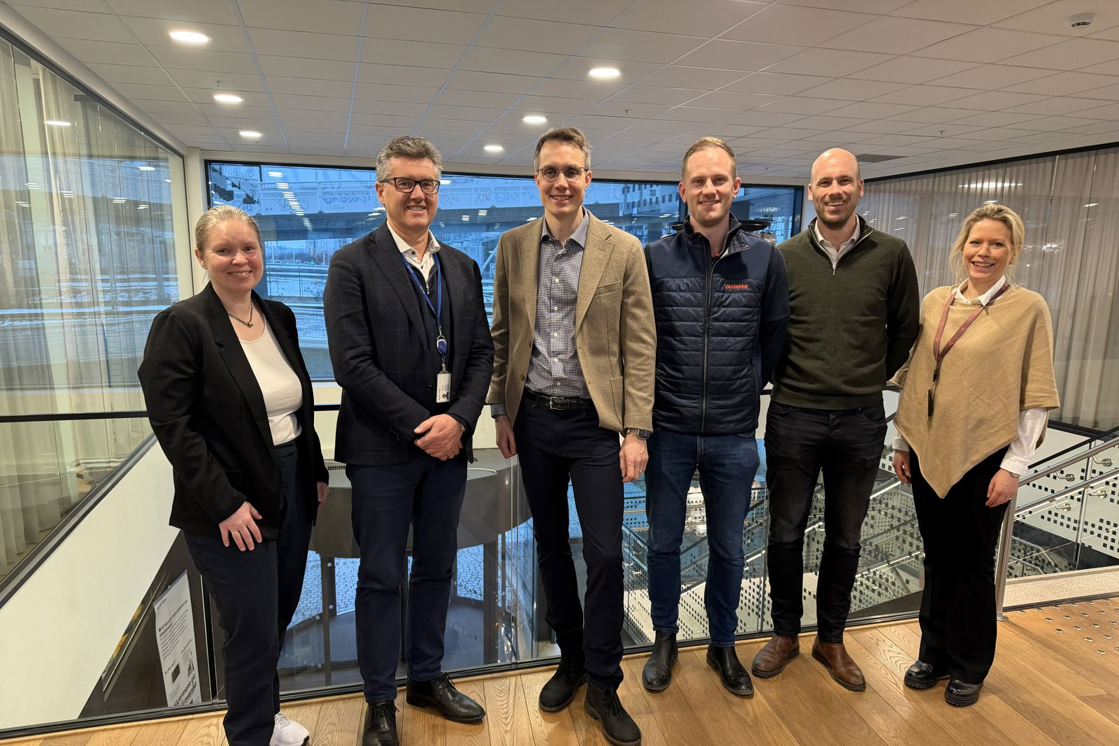 Fra venstre: Gunn Dordi Elvedal, prosjektleder Bane NOR, Henning Bråtebæk, konserndirektør Drift og vedlikehold Bane NOR, Anders Haugen, leder Infrastruktur Veidekke Bane,  Torgeir Grindstuen, prosjektleder Veidekke Bane, Magnus Kristensen,  leder Veidekke Bane og Elisabeth Frydenbø, leder Marked og tilbud Veidekke Bane.
