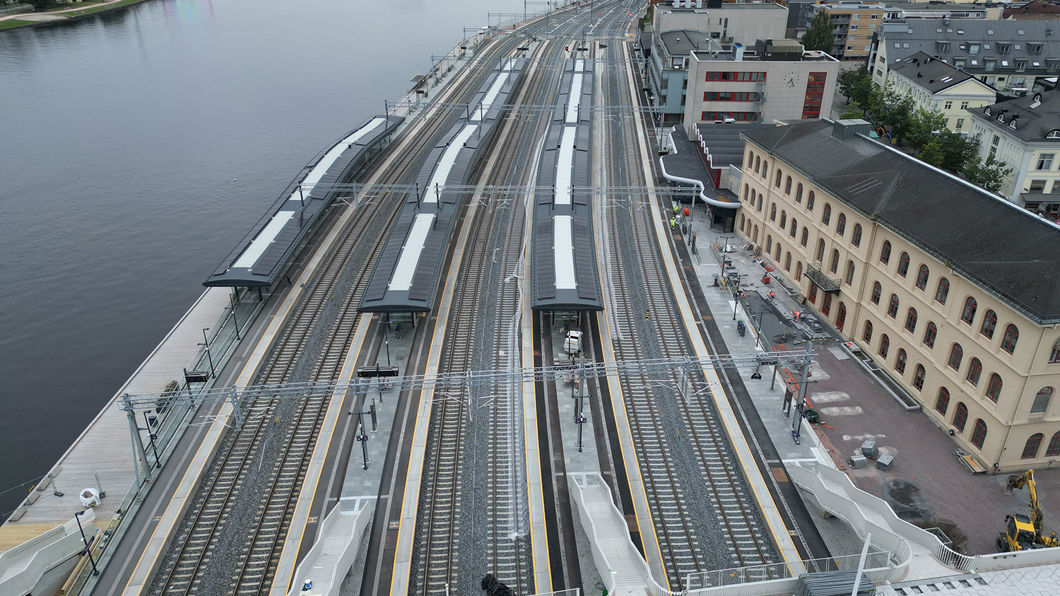• Togtrafikken er i gang på nye Drammen stasjon