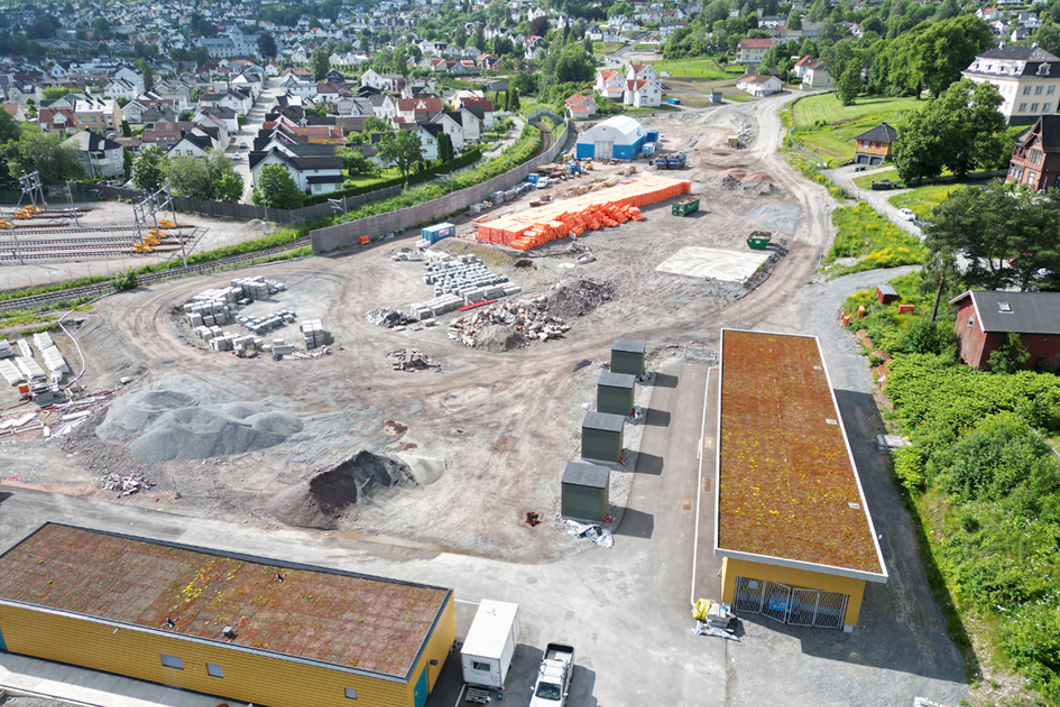 Ved stasjonen jobber vi nå med å gjøre ferdig korttidsstoppet for av- og påstigning i Jernbanegata. Bortsett fra trappen ned til dette området, er alle trappene ned fra Bybrua åpnet.
