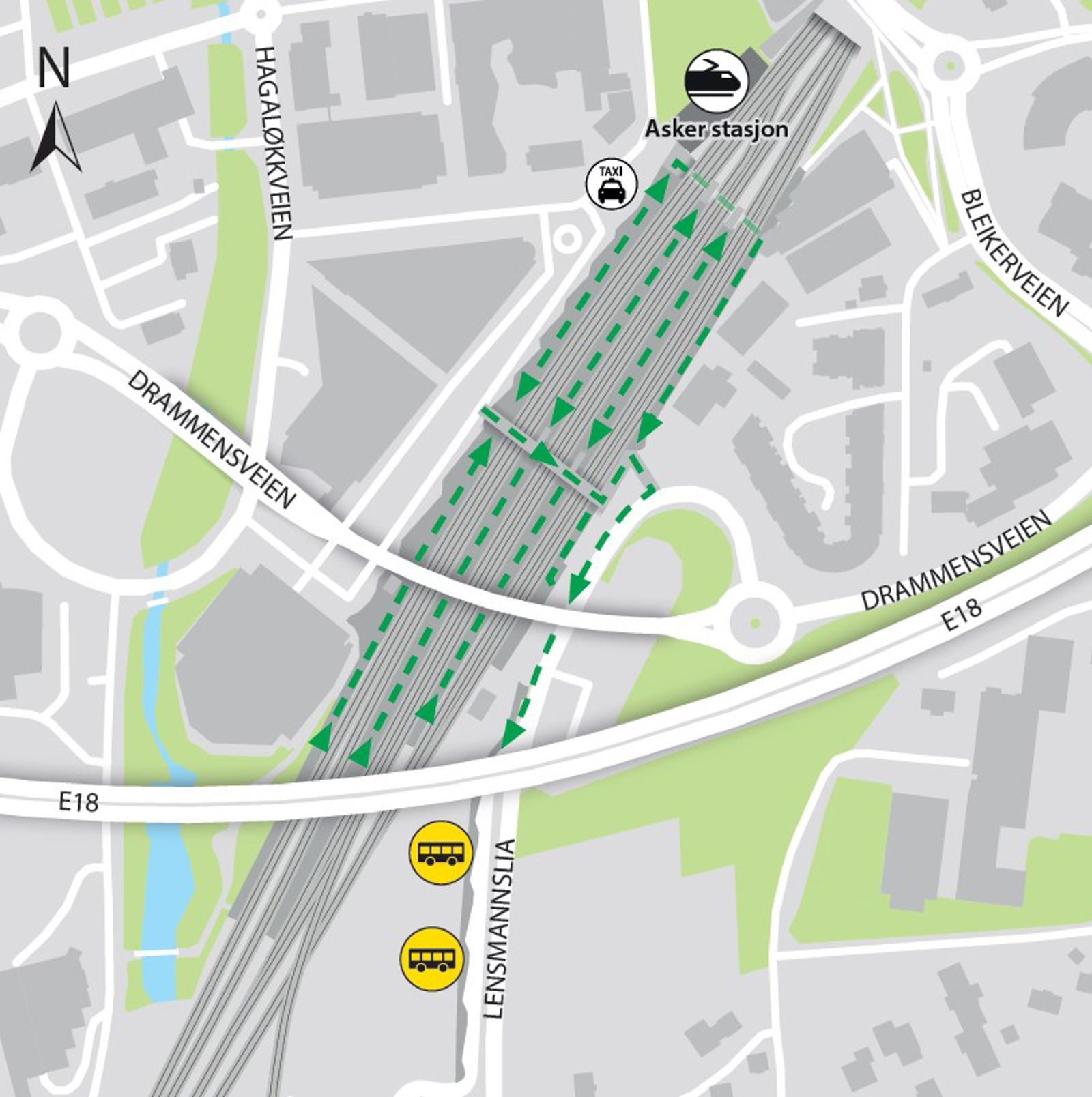 Asker stasjon ligger på Drammenbanen. Herfra kan du ta toget til store deler av Øst- og Vestlandet.