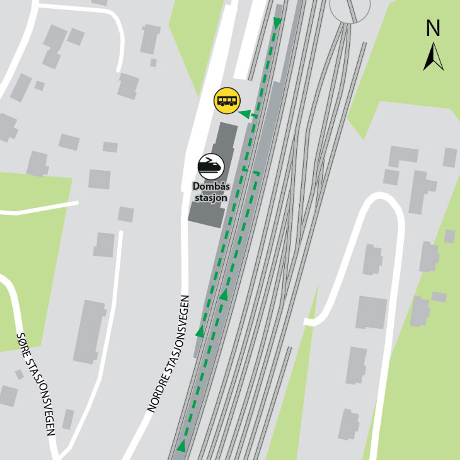 Dombås stasjon på Dovre ligger på Dovrebanen. Herfra kan du ta toget i retning Trondheim, Åndalsnes, Oslo S og Hamar.