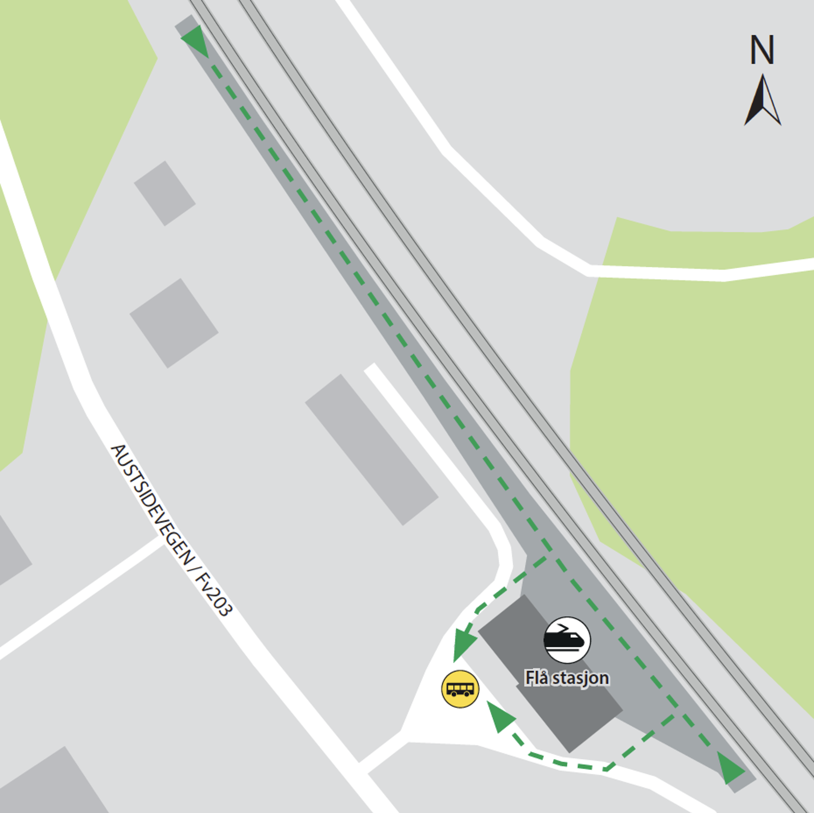 Flå stasjon ligger på Bergensbanen. Herfra kan du ta tog i retning Bergen, Geilo, Flåm og Oslo S.