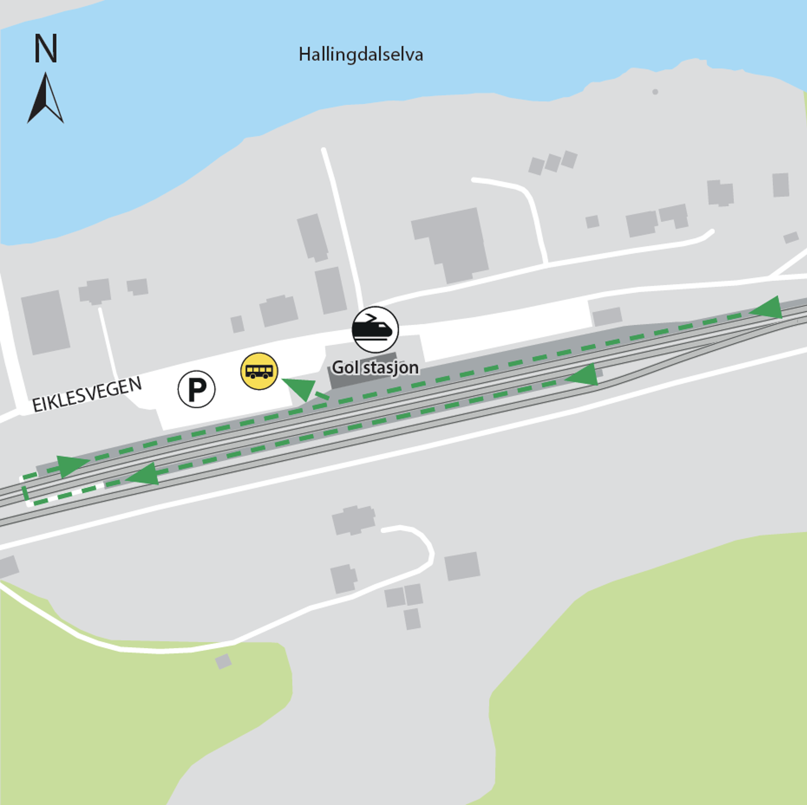 Gol stasjon ligger på Bergensbanen. Herfra kan du ta toget i retning Bergen, Flåm og Oslo S.