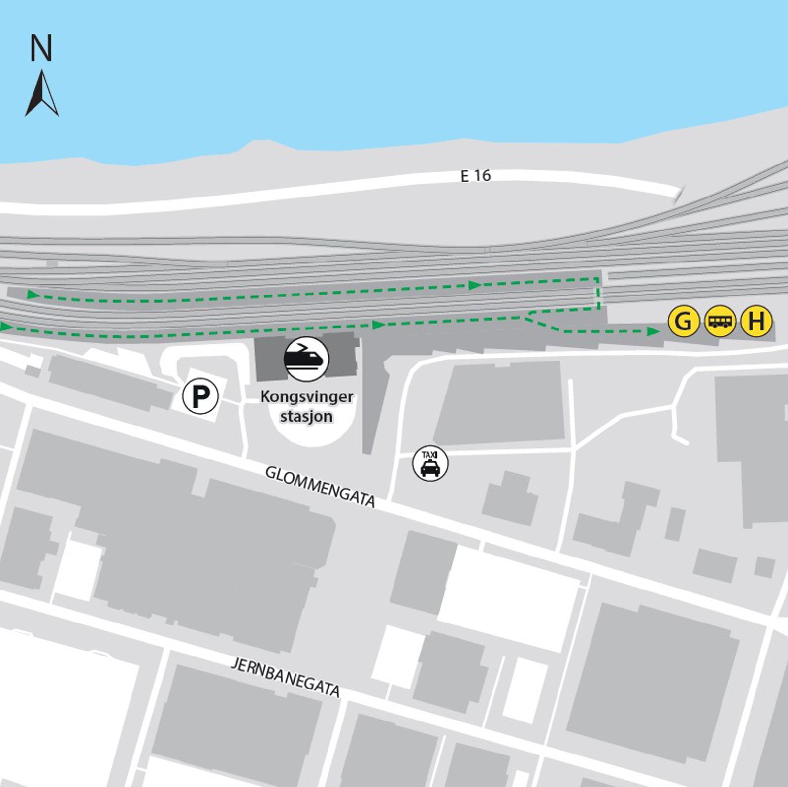 Kongsvinger stasjon ligger på Kongsvingerbanen. Herfra kan du ta toget mot Oslo S, Asker, Karlstad og Stockholm.