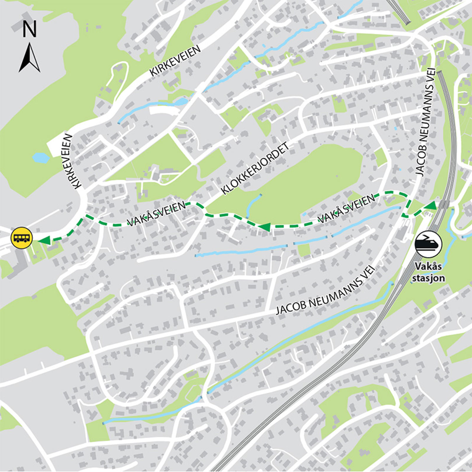 Vakås stasjon i Asker er en holdeplass og ligger på Drammenbanen. Herfra kan du ta tog mot Lillestrøm, Asker, Drammen og Oslo S.